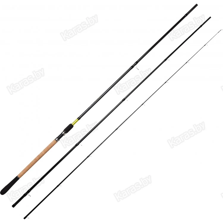 Высококачественное трехколенное матчевое удилище. Бланк изготовлен с использованием упрочняющей укладки углеволокна, что обеспечивает жесткость, максимальную дальнобойность и точность заброса.