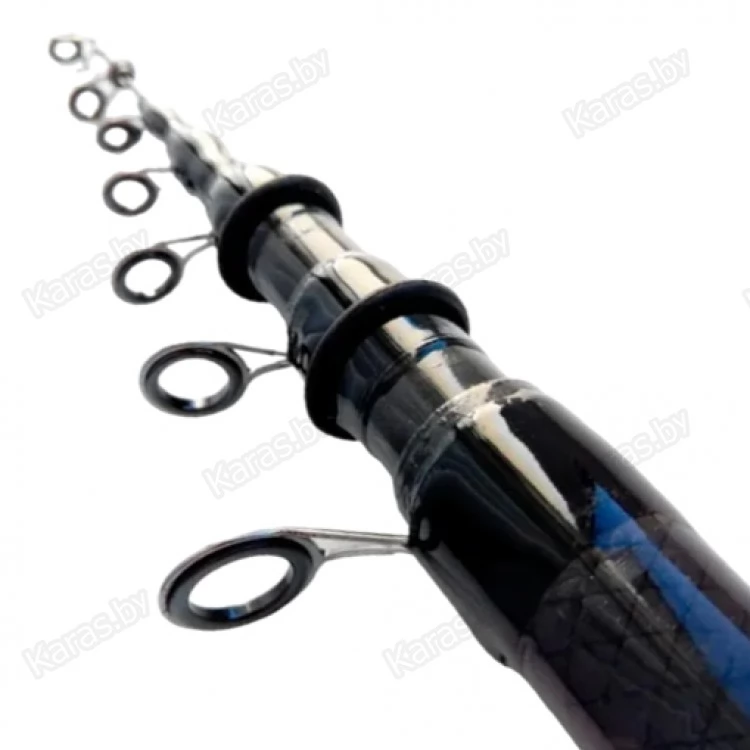 Легкая и жесткая удочка типа «болоньез», из глубоко переработанного графитового волокна. Благодаря своей мощности и амортизационным качествам, известны многочисленные случаи успешного применения этой снасти на карповых прудах. Кольца SiC, 2 скользящих колечка на первом колене. Пенорезиновая вставка в комле предотвращает поломки колец при сложенных коленах. Классический катушкодержатель с клипсой. Пластиковый колпак полностью закрывает кольца.