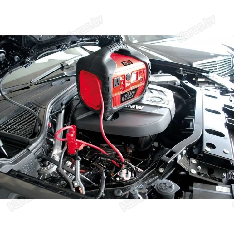GENMAC-OTTO снабжен пусковым устройством и «крокодилами» для подключения к аккумулятору, которое не требует подключения к дополнительному источнику питания и работает полностью автономно. Он с легкостью способен запустить двигатель, так как способен дать до 600 Amp в пиковом пусковом.