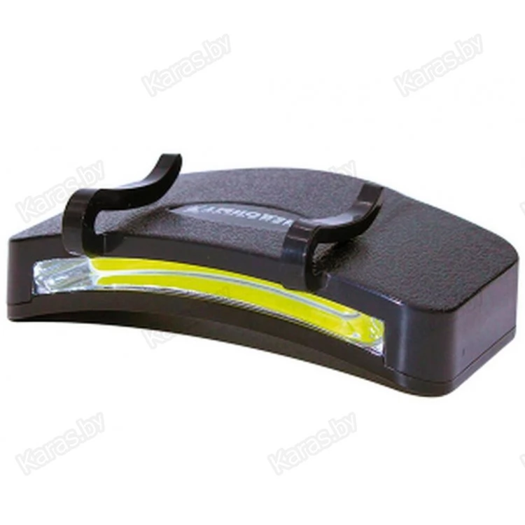 Легкий фонарь с зажимами для козырька головного убора. Позволяет освещать широкий угол пространства благодаря удлиненному СОВ-светодиоду в зеркальном отражателе. Долгую непрерывную работу обеспечат три батарейки типа ААА.