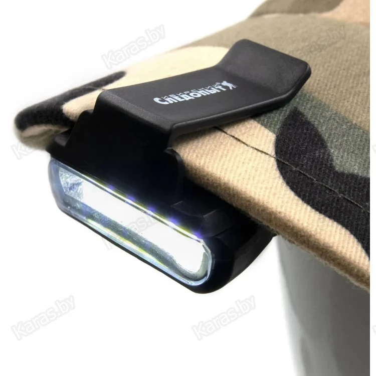 Очень легкий и компактный фонарь бюджетной категории с универсальным креплением на козырьке головного убора, одежде, сумке, рюкзаке.