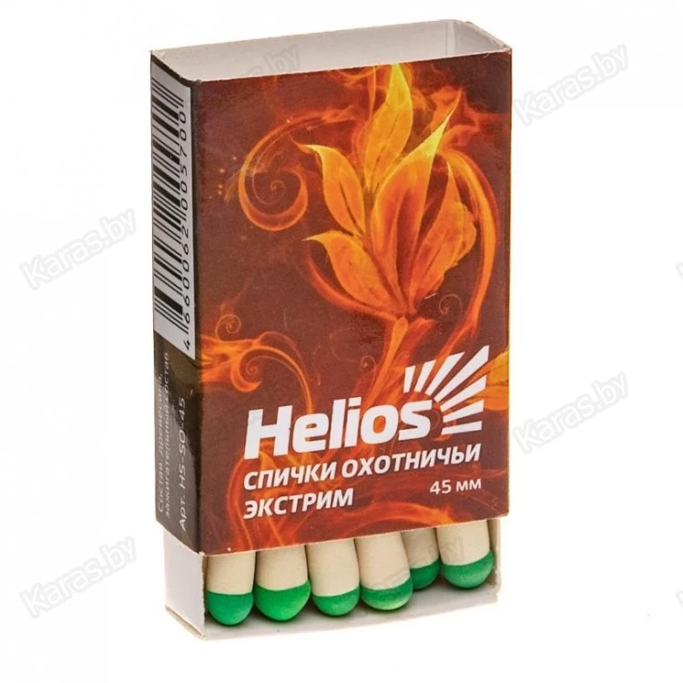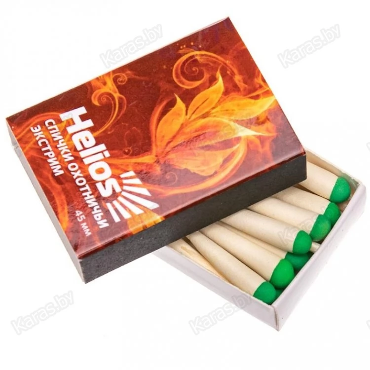 Спички охотничьи Экстрим Helios (HS-SO-45) предназначены для разведения огня в экстремальных условиях, в том числе на ветру, в дождь и снегопад. Удобны для поджига твердых разжигающих материалов, различных видов топлива и пиротехнических.
