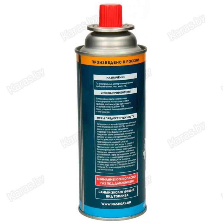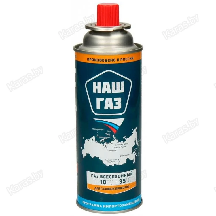 Универсальный газовые баллоны "НАШ ГАЗ" с цанговым захватом для портативных газовых приборов (горелок, плит, ламп и т.д.). Топливная смесь создана на основе смешения 3-х базовых углеводородных газов: Пропана, Бутана и Изобутана. Особая пропорция смешения газов позволит Вам использовать этот баллон при температурах до -10С без дополнительного подогрева топливной смеси.