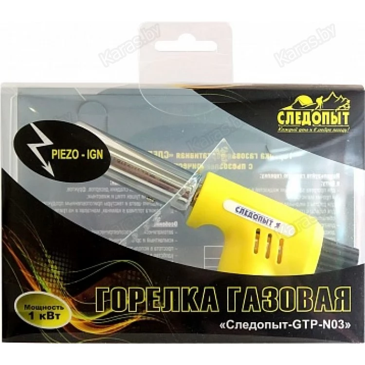 Горелка газовая портативная «Следопыт GTP-N03» является универсальным нагревательным прибором с открытым и направленным способом факельного горения. Горелка рассчитана на использование сжиженного газового топлива в баллонах 220 гр. с клапаном нажимного типа и цанговым способом крепления. Горелка оборудована системой искрового пьезоэлектрического розжига совмещенной с винтом регулировки подачи газовой смеси.