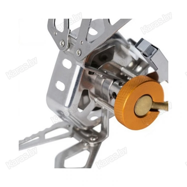 Яркие детали на горелке не дадут ей затеряться в снегу.
