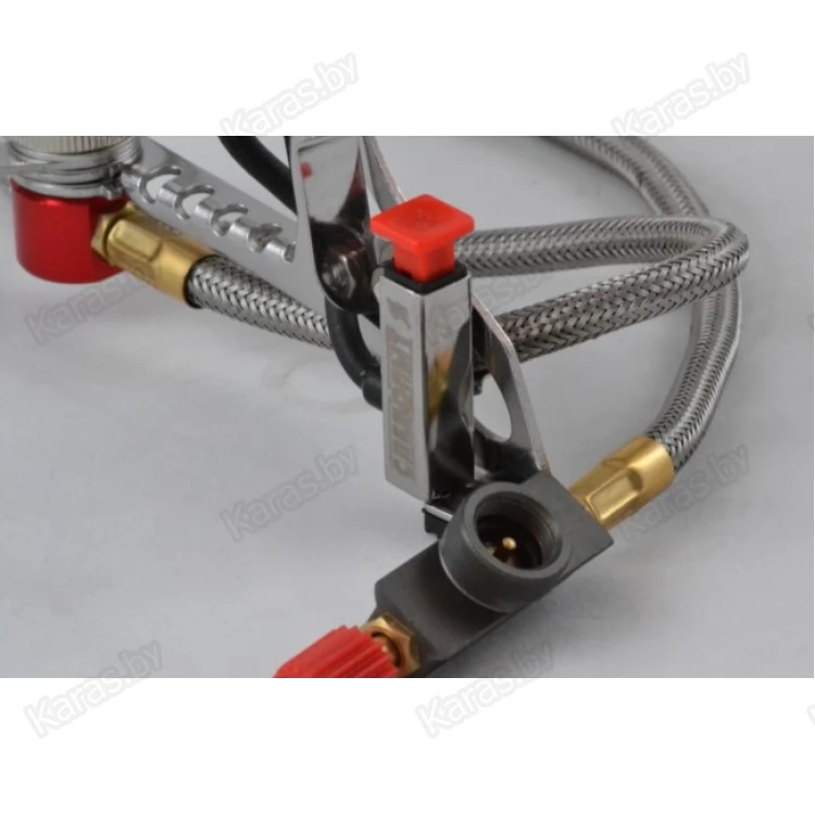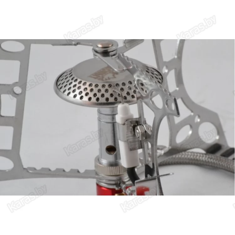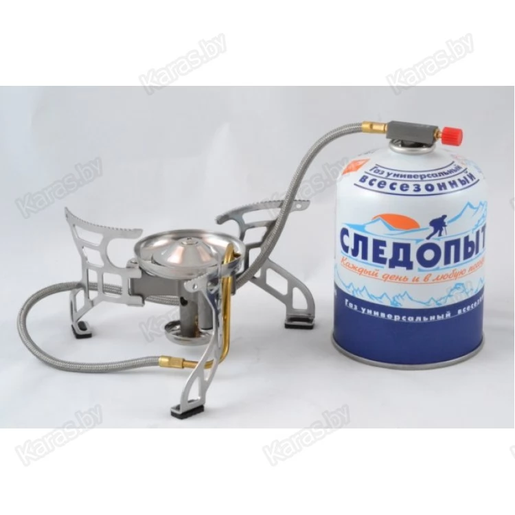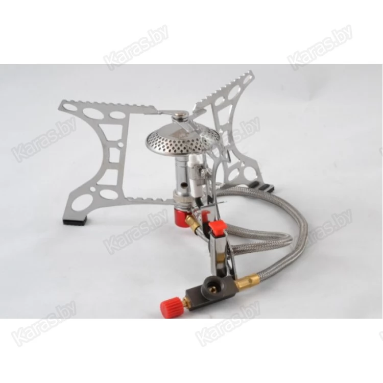 Высокотехнологичная газовая горелка оборудованная гибким шлангом и системой предварительного подогрева топливной смеси. Длина гибкого шланга увеличена до 50 см., что положительно сказывается на потребительских свойствах плиты и повышает уровень безопасности для пользователя. А система предварительного подогрева топливной смеси обеспечивает стабильную работу горелки при низких температурах, а также позволяет горелке работать на жидких фракциях газа (при подключении баллона в перевернутом положении).  Благодаря особой форме горелки мощность плиты увеличена до 3,5 кВт. Отражатель горелки имеет форму купола и формирует пламя по четкой линии. Сбить пламя у этой горелке не под силу даже даже самыми сильными порывами шквального ветра. Резиновая подошва опорных ножек плиты обеспечивает хорошую устойчивость на мокрых и обледенелых поверхностях.