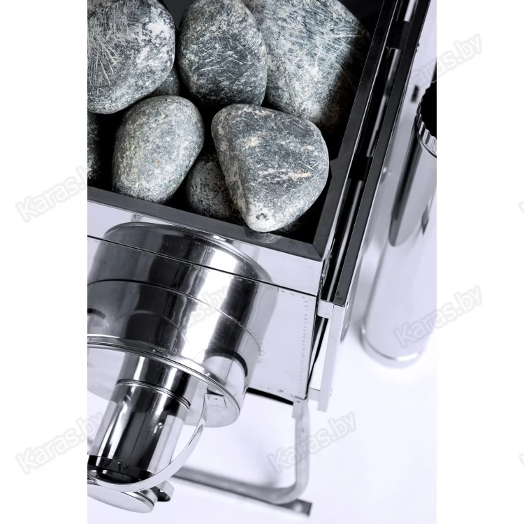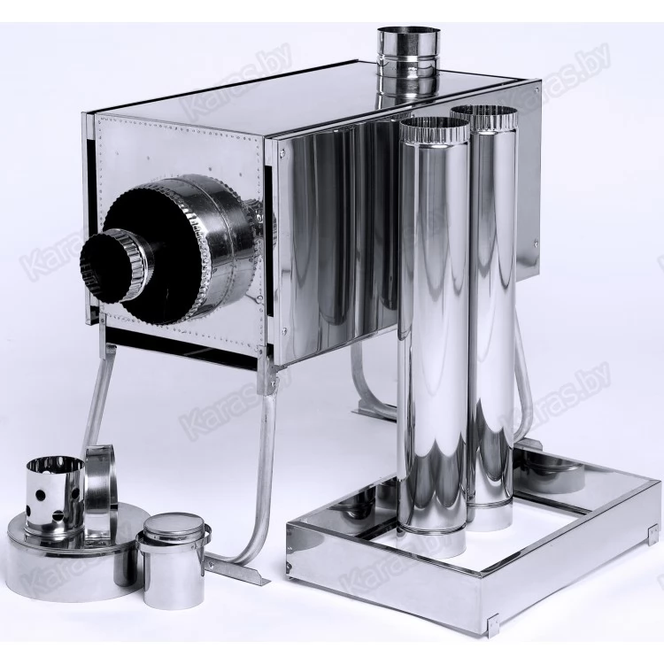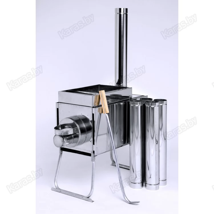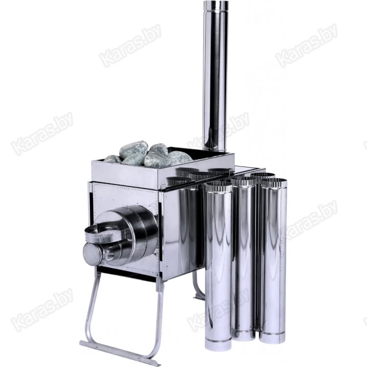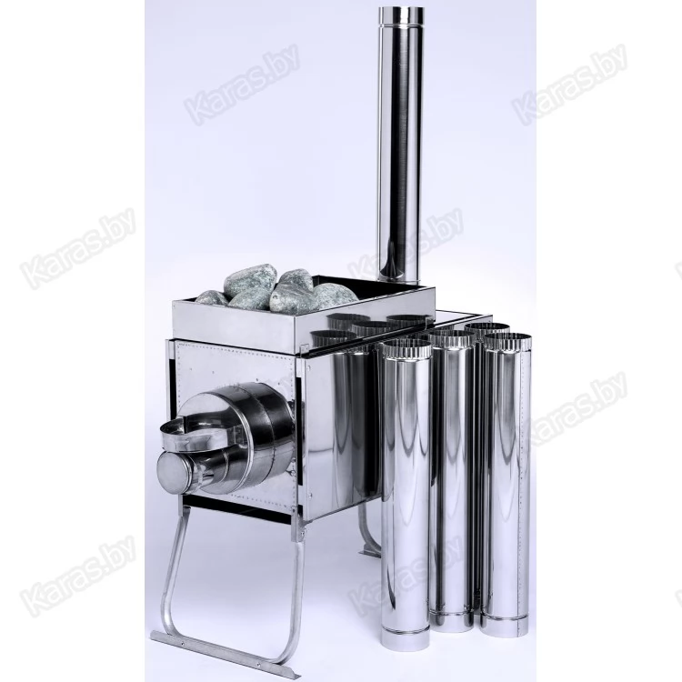 Печь состоит из металлического короба с внутренней перегородкой-искрогасителем с оснащенным выходом под дымоходную трубу, имеет четыре стационарных защитных экрана, съемный короб для закладки камней, облегченные алюминиевые складные ножки и дымоходную трубу, состоящую из сегментов. Топочное отверстие имеет цилиндрическую дверцу с размещенными на ней ручкой и «стаканом» для регулировки тяги.
