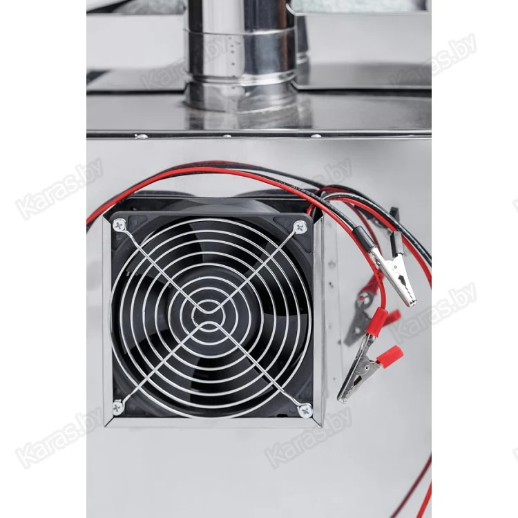 - Обогрев помещения происходит на стадии растопки дров, за счёт работы вентилятора.