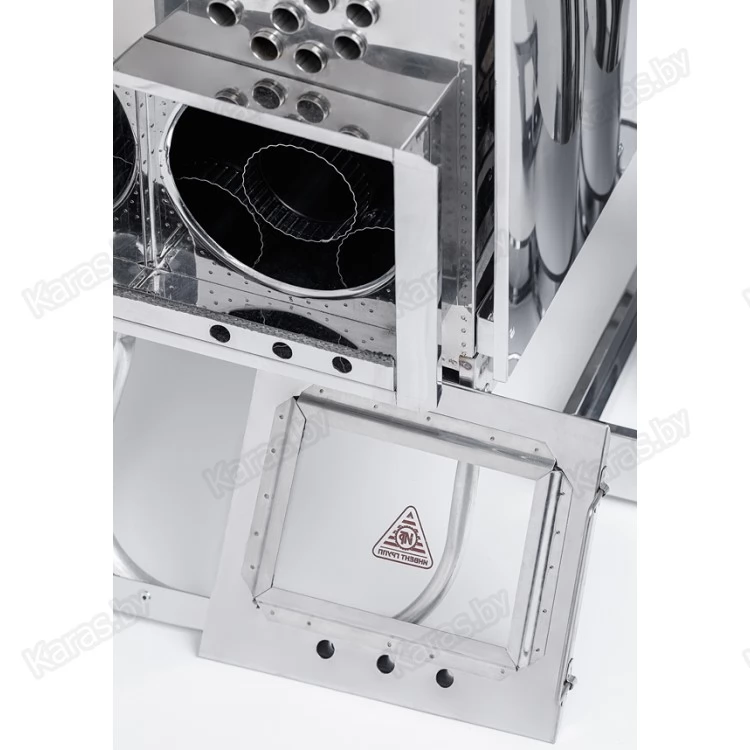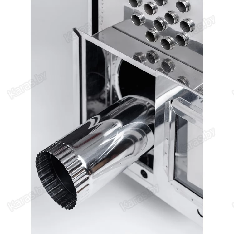 Печь-камин «Инвент» с теплообменником выполнена из жаропрочной нержавеющей стали.