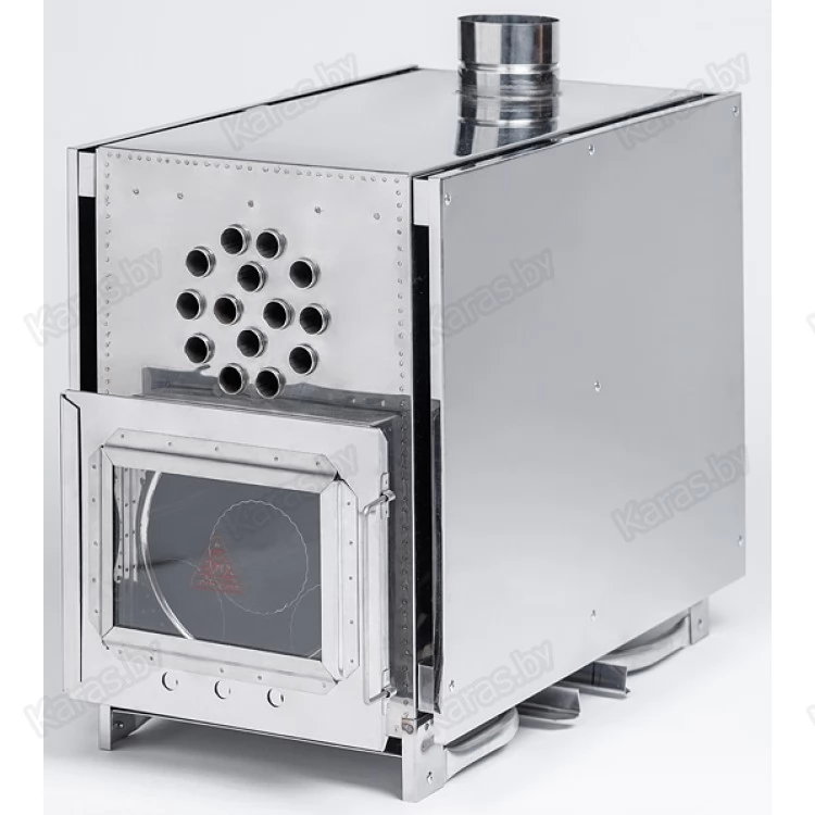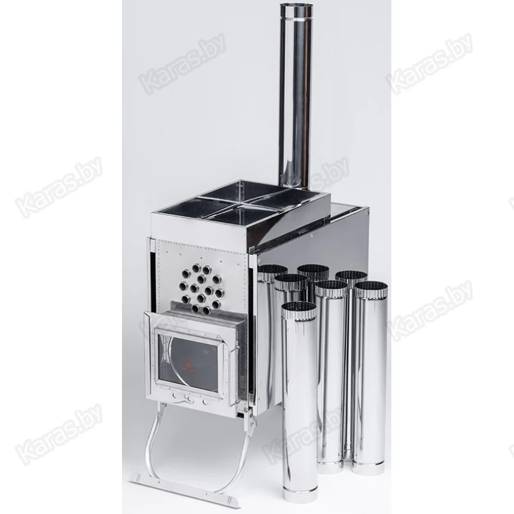 Печь-камин с теплообменником предназначена для обогрева помещений (зимних палаток) в условиях сурового севера, с использованием твердого топлива (дрова, топливные брикеты, древесный уголь, хворост и т.п.).