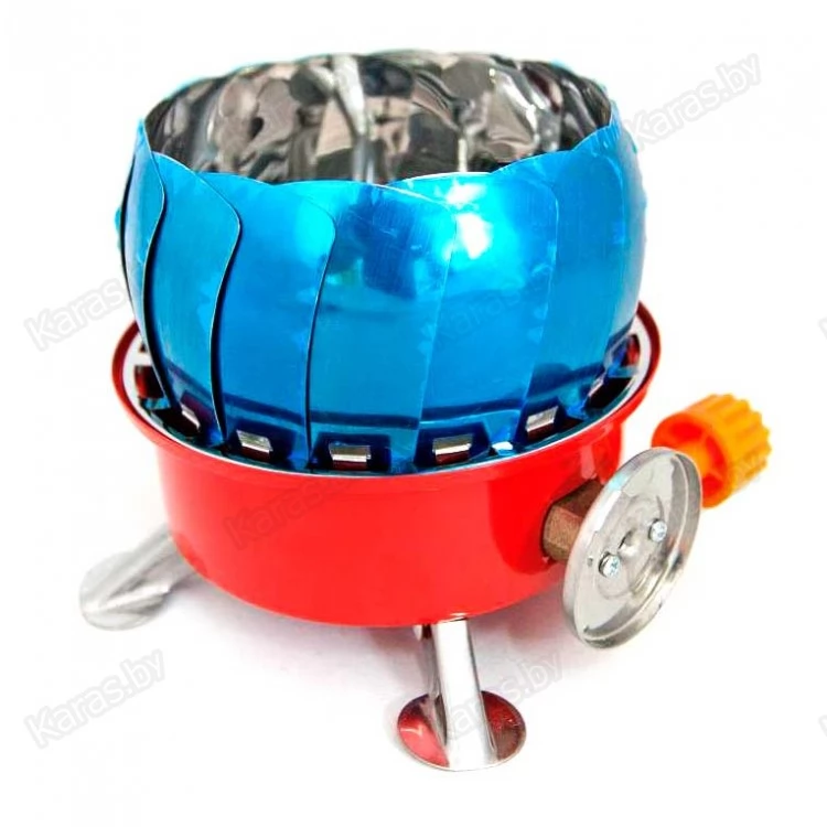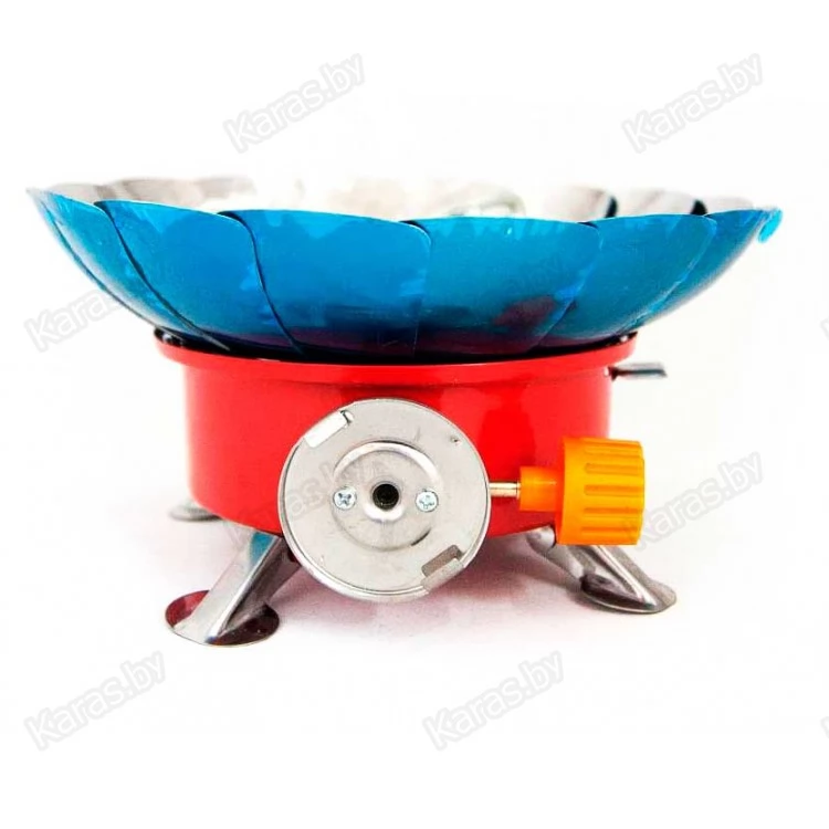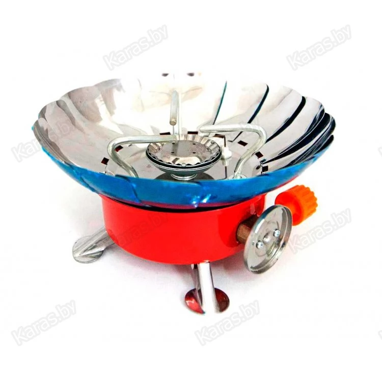 Миниатюрная газовая плита-трансформер с лепестками для ветрозащиты, в сложенном виде, занимает совсем мало места, максимальная экономия места обеспечивается за счет складных элементов. Ножки плитки и подставка для посуды эргономично укладывается вплотную к друг другу, ветрозащита выполнена в виде лепестков, позволяет готовить даже при сильном ветре.