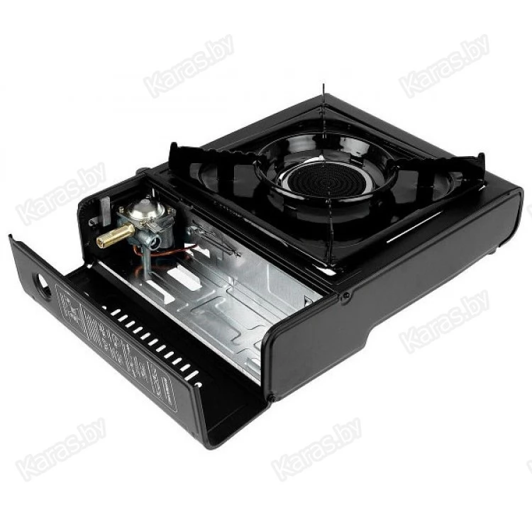 Плита оборудована одной горелкой с кольцевым образованием пламени, системой пьезоэлектрического розжига и блоком управления подачей газа. Для удобства транспортировки и хранения плита размещается в пластиковом кейсе. В качестве топлива используются газовые смеси в баллонах с нажимным клапаном и цанговым захватом. Также в комплекте поставляется переходник на большие бытовые баллоны.
