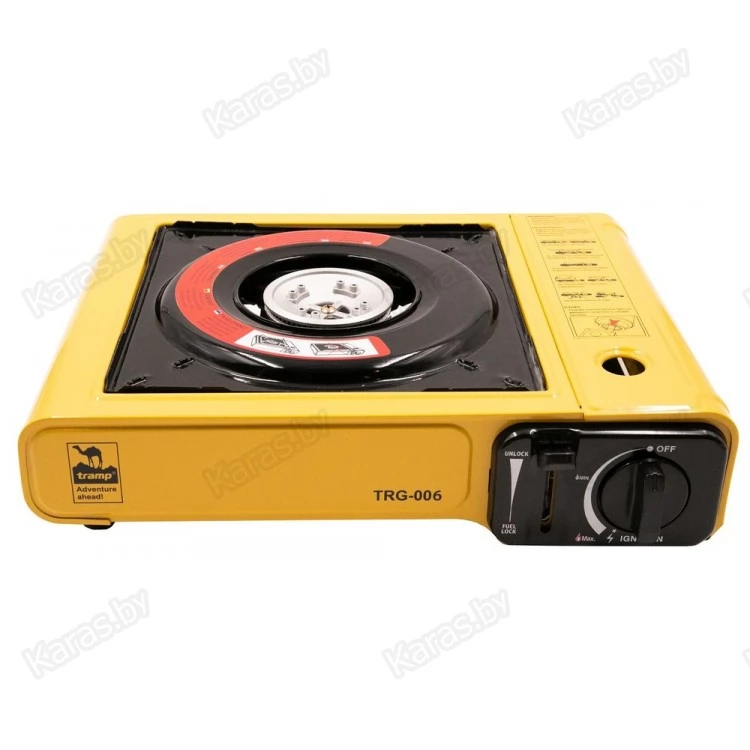 Портативная одноконфорочная газовая плитка с пьезоподжигом. Работает от стандартного цангового газового баллона (Tramp TRG-001 или аналог), который размещается внутри плиты. Комплектуется переходником для подключения к большому бытовому газовому баллону. Надежна и предельно проста в эксплуатации. Экономичный расход топлива. Цельнолитая горелка. Легко очищающийся поддон. Четыре системы безопасности.