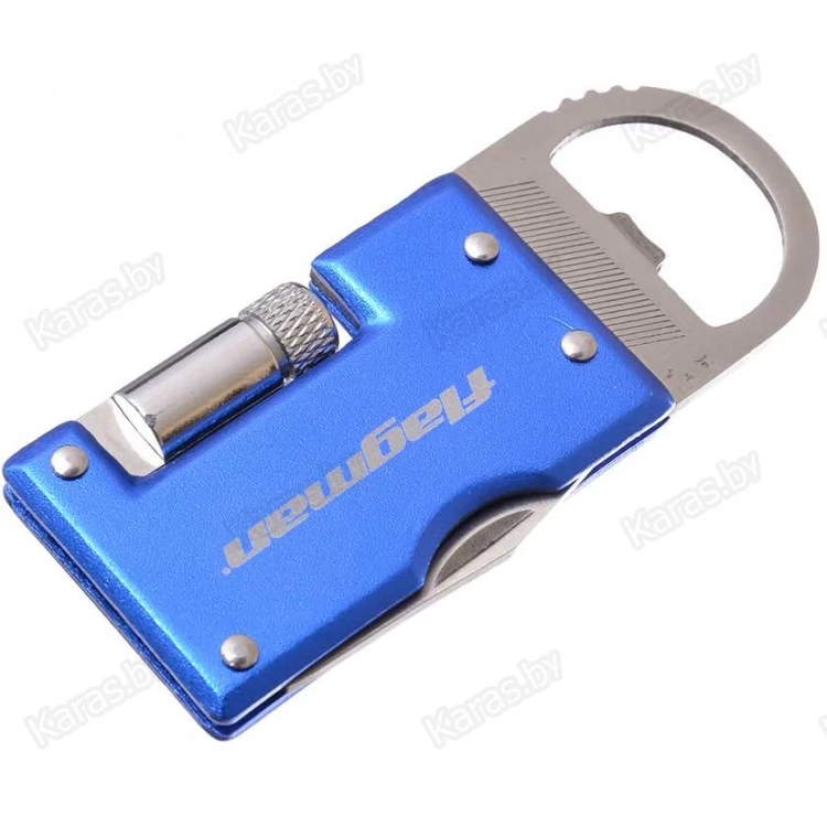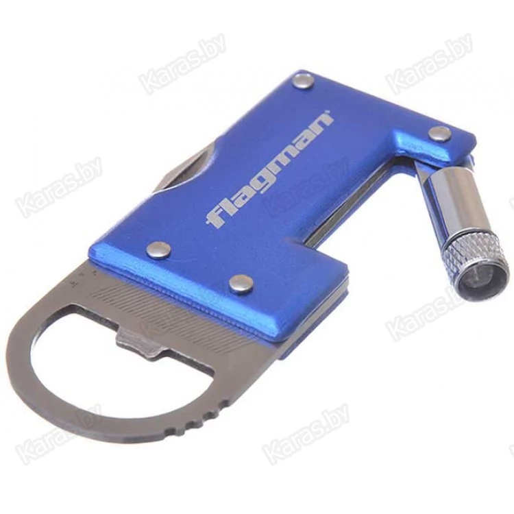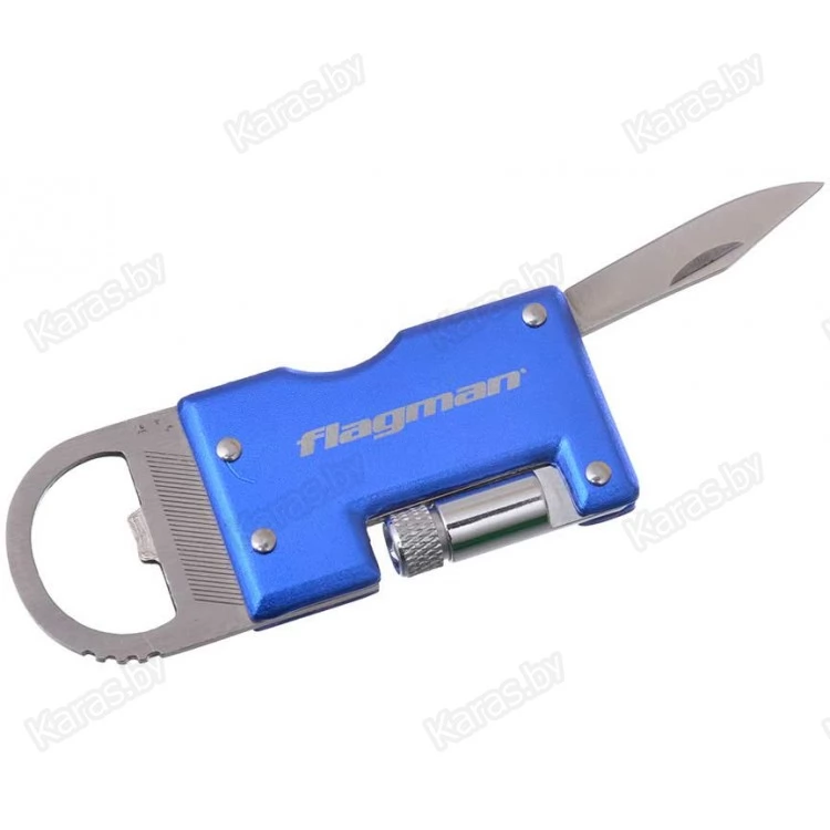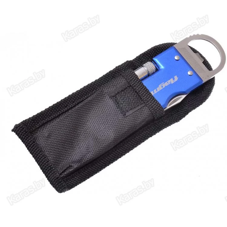 Удобный и функциональный брелок, включающий складной ножик, складной светодиодный фонарик, пилку для ногтей и открывалку для бутылок. Поставляется в прочном тканевом чехле.