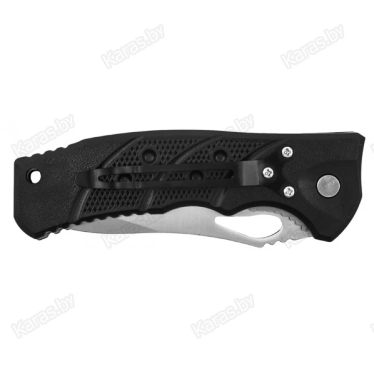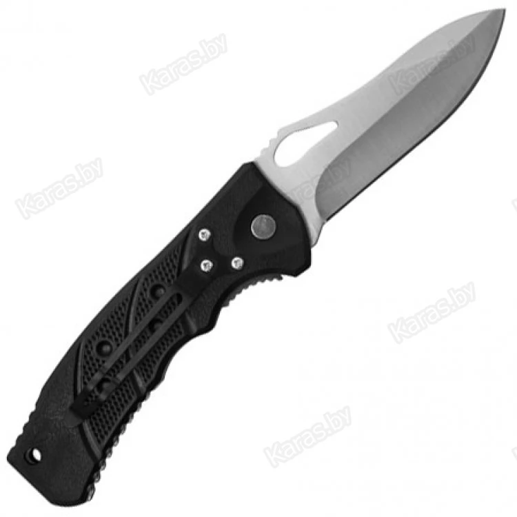 Благодаря эргономичной рукоятке, нож удобно лежит в руке. Наличие небольшого рифления на поверхности рукоятки позволяет, не напрягаясь, удерживать нож при любых погодных условиях. Изготовлена рукоять из популярного ABS-пластика, к основным достоинствам которого относятся термостойкость и невосприимчивость к химически агрессивным веществам.