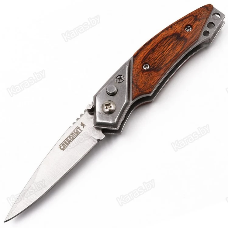 Легкий карманный нож Следопыт. Лезвие выкидывается нажатием на кнопку.