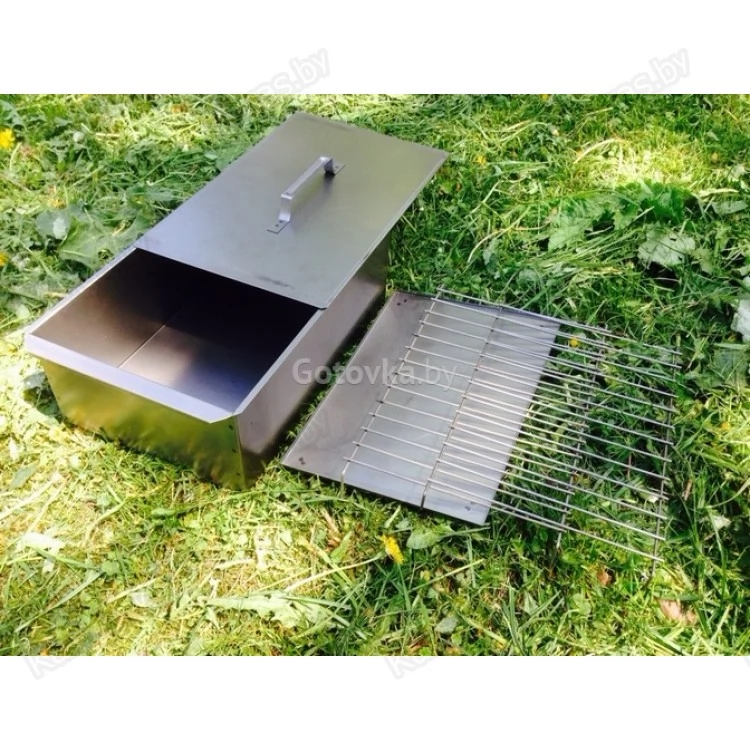 В комплект коптильни входят: корпус, крышка, 2 решетки, поддон для сбора жира.