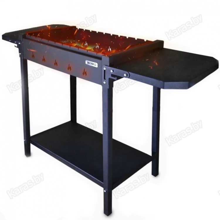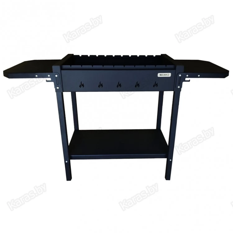 Мангал "Классик-3" от компании MANKO предназначен для приготовления пищи под открытым небом. Выполнен из стали толщиной 2 мм. Покрыт термостойкой краской, выдерживает 700 градусов по цельсию. Практичный и удобный.. Вмещает 10 шампуров.  Имеется две складных боковых и одна нижняя полка для продуктов и дров.