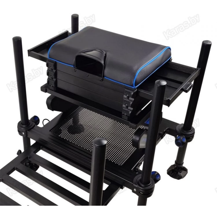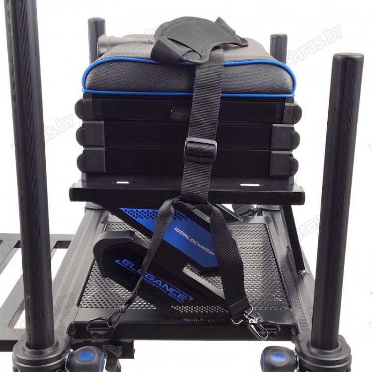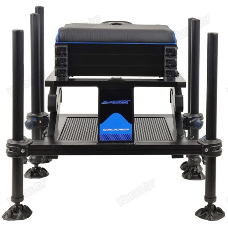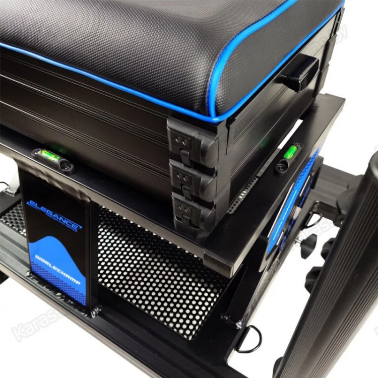 Новая, высококлассная, спортивная платформа Elegance, невероятно устойчивая и легкая, с удобным сиденьем, шестью противоскользящими ножками диаметром 36 мм и выдвижной педаной для ног. Она позволит добиться наилучших результатов в спортивной ловле на фидер! Передние и средние телескопические ножки позволяют легко складывать, раскладывать, регулировать платформу и размещать на любой поверхности, а на торцах ножек есть резьба для монтажа подставок под удилища и другого оборудования. Платформа Elegance World Champ имеет под сиденьем три модуля для снаряжения и аксессуаров. У первого модуля два боковых выдвижных ящика, а два других полностью открываются путем поднятия сиденья. Эта конкурентоспособная, высокого уровня платформа для фидерной рыбалки достойна Чемпионов мира в этой дисциплине!