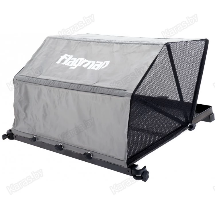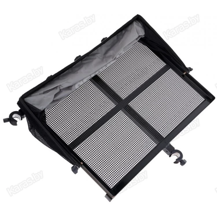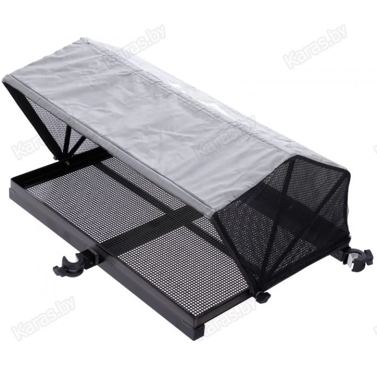Боковой столик для платформы, отличающийся увеличенным размером. С одной стороны он крепится к ноге платформы, с другой – опирается на две дополнительные ноги (приобретаются отдельно). Оборудован складным тентом для защиты наживки и прикормки от солнца и дождя. Тент крепится к платформе винтами с удобными пластиковыми ручками, благодаря чему быстро отсоединяется и устанавливается. Перфорированная конструкция обеспечивает хорошую вентиляцию при закрытом тенте и не дает воде скапливаться на столике. Выполнен из прочного алюминиевого сплава. Предназначен для платформ с диаметром ног 25 мм и оборудован быстросъемным креплением.