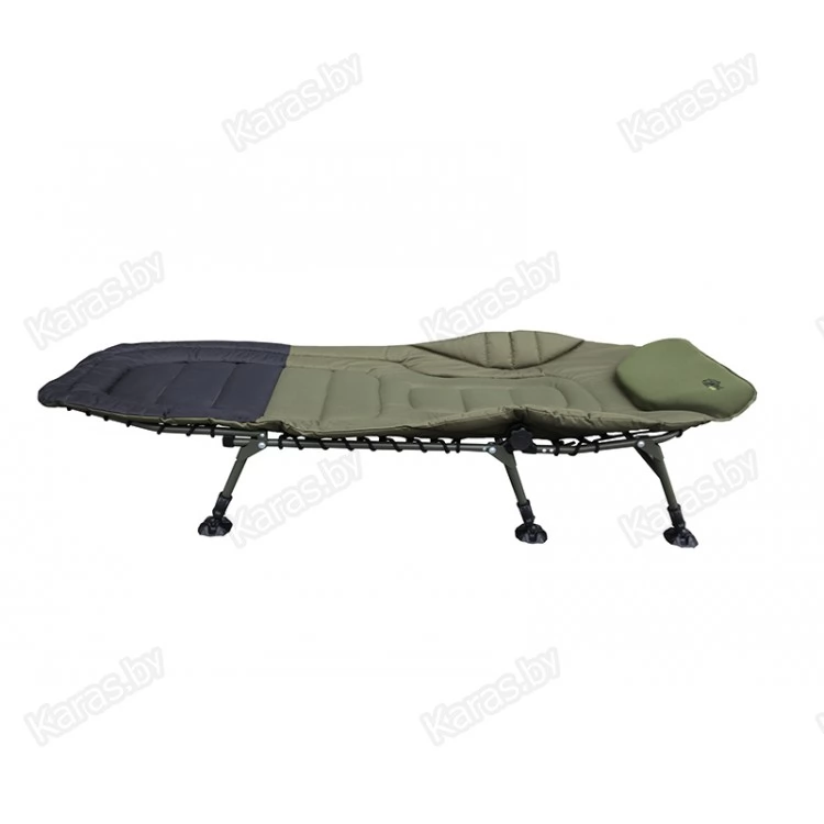 Кровать складная. Рама с эластичным матрасом. Сложная форма спинки для дополнительного комфорта, мягкая подушка, шесть независимо регулируемых по высоте ножек с широкими опорами.