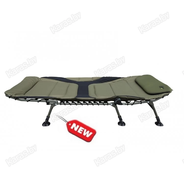 Кровать складная. Рама с эластичным матрасом. Сложная форма спинки для дополнительного комфорта, шесть независимо регулируемых по высоте ножек с широкими опорами.