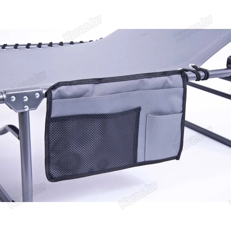 Кровать-раскладушка Norfin Halkia складная классическая. Каркас выполнен из высокопрочной стали, кроме того хорошая устойчивость кровати обеспечивается за счет специальной треугольной силовой конструкции для ножек. Тканевое покрытие кресла выполнено из стойкого к износу материала с высокой прочностью на растяжение, хорошей воздухопроницаемостью, что обеспечивает комфорт и долговечность изделия. Кровать легко складывается и раскладывается, ее удобно хранить и перевозить. В комплект входит съемный подголовник для комфортного отдыха, который можно регулировать по высоте. Высоту подголовника можно регулировать при помощи боковых гребенок. Сбоку кровати имеется подвесной карман для хранения телефона, очков или прочей мелочи.