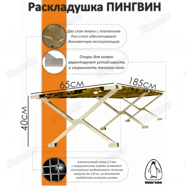 1. Легкий и прочный каркас. Максимальная нагрузка 150 кг.