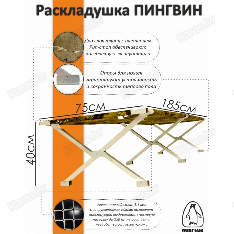 Раскладушка Пингвин 185х75 см