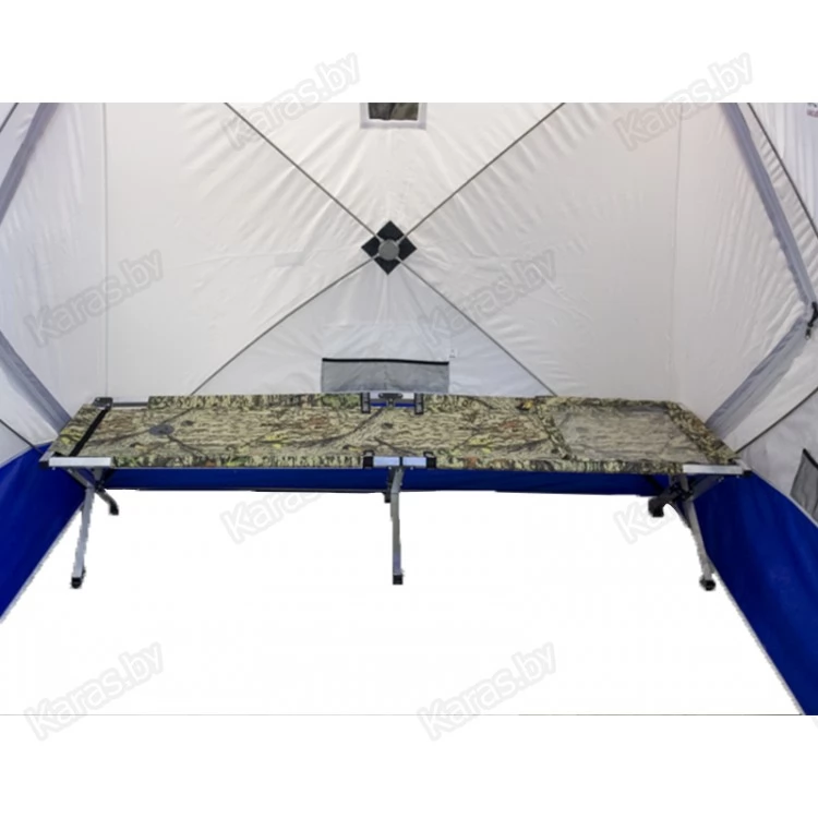 6. В качестве дополнения, в комплекте идет многофункциональная защитная накладка из ПВХ плёнки на липе, позволяющая положить ноги в сапогах на раскладушку, не боятсь запачкать и промочить ткань, на ней удобно делать прикормку, разложить насадку, бросить влажное полотенце. Креплениена липе или с одной стороны раскладушки, или с другой, для удобства правшей-левшей.