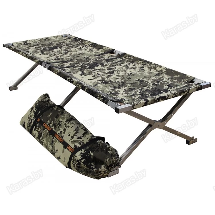 Раскладушка имеет Х-образную конструкцию, собрана на каркасе из оцинкованной стальной трубки 25x25 мм. Раскладушка обладает высокой прочностью, быстро раскладывается. В сложенном виде, благодаря своей конструкции, занимает немного места, в отличие от классических раскладушек.