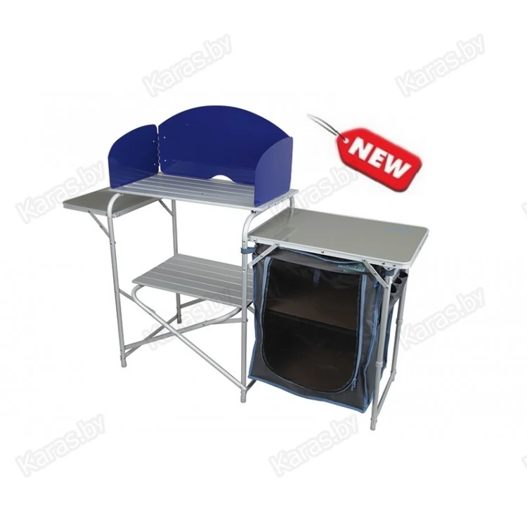 Кухня кемпинговая складная. Столешница с ветрозащитным экраном ,шкафчик, полки. В сложенном состоянии представляет собой компактный чемоданчик.