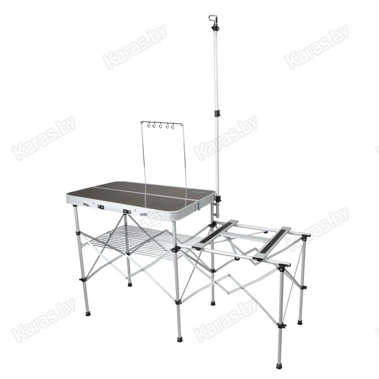 Кухня кемпинговая складная. Подставка под плиту, просторная рабочая поверхность, подвес для кухонных инструментов, решетка для хранения, кронштейн для лампы. В сложенном состоянии представляет собой компактный чемоданчик.