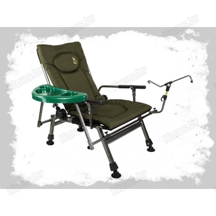 Особенностью данной модели карпового кресла есть то, что он легко трансформируется в карповую раскладушку благодаря установки подставки для ног (опция в комплект не входит и продаётся отдельно) которая в свою очередь делает кресло длиннее. Столик и держатель для удилища можно разместить с удобной для Вас стороны. Любой из этих элементов можно отдельно демонтировать.