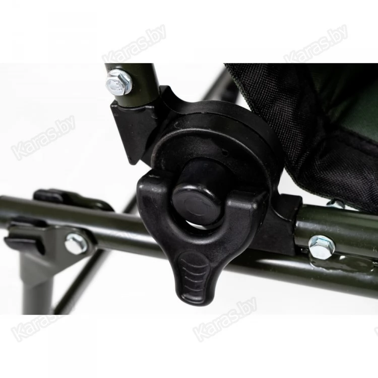 Кресло крепится болтами, что позволяет без труда повесить на подлокотниках всевозможные обвесы для рыбалки. А ещё таким же образом легко снять ткань для стирки. Нижняя часть спереди усилена дополнительными трубками, что позволяет выдерживать большие нагрузки веса людей.