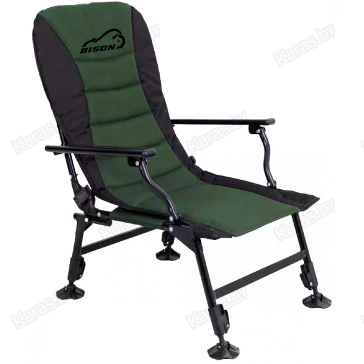 Карповое кресло Bison HBA-1001 — рыбаки оценят данную модель, так как можно отрегулировать по высоте и наклону каждую ножку. На неровных поверхностях это очень актуально. Также спинку можно регулировать по желанию, опускать до положения лёжа, и использовать кресло как раскладушку, тем более, что мягкий наполнитель создаёт приятные ощущения во время отдыха.
