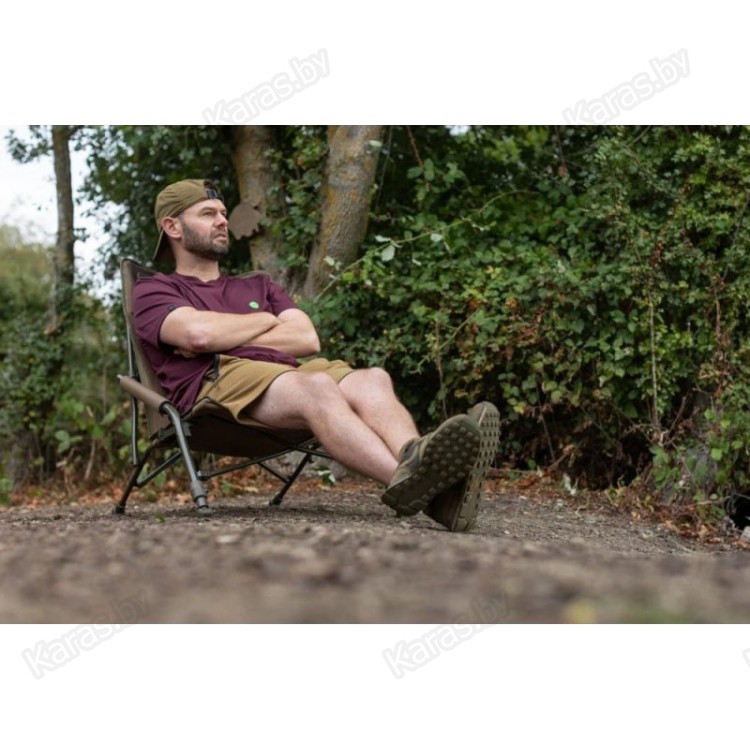 KORDA Compac Low Chair Dark Kamo  — чрезвычайно легкий и очень компактный стул с легкой рамой и конструкцией «гармошка». Эти особенности делают этот стул идеальным для погрузки на тележку, установки в палатке или транспортировки. С регулируемыми по высоте передними ножками с грязевыми опорами, стул легко выравнивается на неровной поверхности, обеспечивая чрезвычайно устойчивую позицию. Как следует из названия, стул предлагает низкопрофильную точку обзора, что делает его идеальным для наблюдения за водой в вашем шелтере или палатке, когда погодные условия требуют тени или укрытия. Подлокотники и подголовник также имеют мягкие накладки, что делает кресло очень удобным для сидения в течение длительного времени.