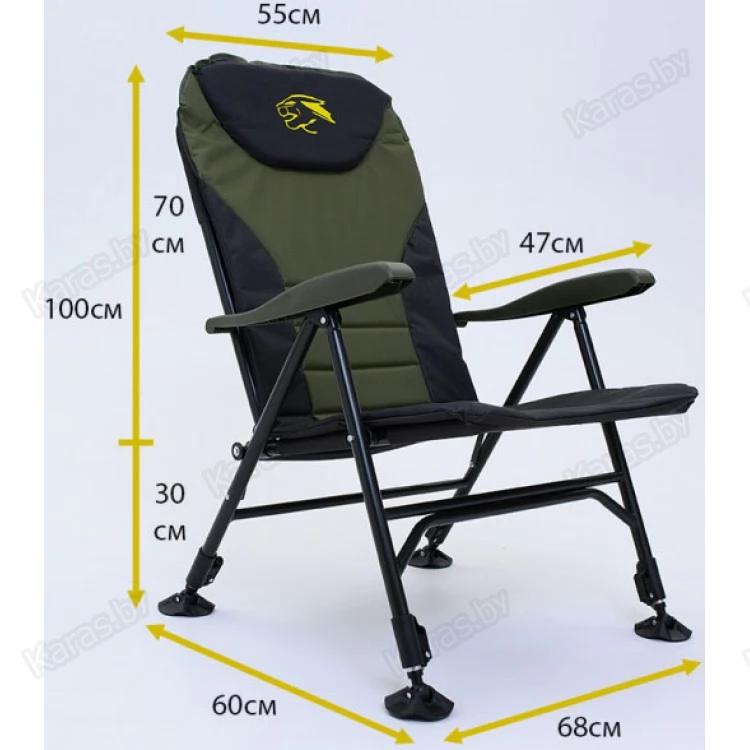 Складное кресло для рыбалки и отдыха - необходимый атрибут человека, который увлекается рыбалкой и любит комфортный отдых на природе. Это кресло предназначено для использования при фидерной и карповой ловле, так как оно имеет удобное и устойчивое основание, а также различные регулируемые элементы для комфортной посадки. Складное кресло предоставит возможность отдохнуть и расслабиться после долгих часов ловли, а также значительно повысит уровень комфорта и удобства. Помимо этого, складное кресло также может использоваться для других видов активного отдыха на природе, таких как пикники, походы и туризм. Оно легко переносится благодаря своей складной конструкции и компактным размерам. Спинка откидывается на 180 градусов, позволяя даже вздремнуть во время безклёвья.