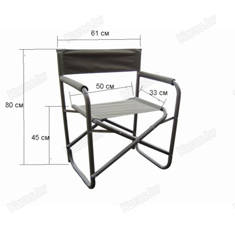 Кресло складное изготовлено из стальной трубы 25 мм, покрыт порошковой краской. Ткань - плотностью 600 D, в два сложения. Нагрузка - до 200 кг. Вес - 4,6 кг.