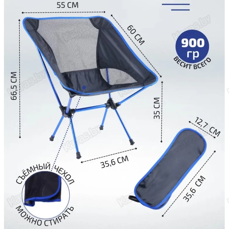Представляем вам кресло-стул складной туристический со спинкой в чехле. Этот стул станет вашим незаменимым спутником во время походов, рыбалки, пикника или отдыха на природе. Сверхпрочный туристический складной стул отлично подойдёт для отдыха на природе. Стул просто складывается и убирается в чехол. Компактный, занимает минимум места в сложенном виде. Имеет небольшой вес и размеры. Может использоваться как складной походный стул для рыбалки, кемпинга или пикника. Сидения стула выполнены из дышащей ткани, каркас из прочного и легкого алюминиевого сплава. Выдерживает вес до 50 кг. Занимает минимум места и весит всего 900 грамм.