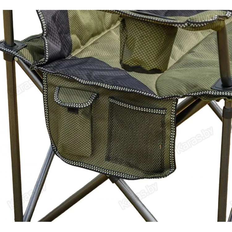 Особенностью кресла является наличие подстаканника и термоотсека, а также сумки для журналов. В комплект также входит нейлоновый чехол на затяжке для удобной транспортировки. Кресло имеет водоотталкивающее покрытие, что позволяет использовать его в любую погоду.