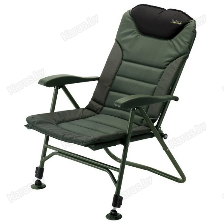 Кресло выполнено из прочного металлического каркаса. Оригинальный дизайн от компании DAM. Сиденье из прочной и износостойкой ткани 600D. Передние ножки регулируются по высоте. Наклон спинки регулируется с помощью подлокотников.