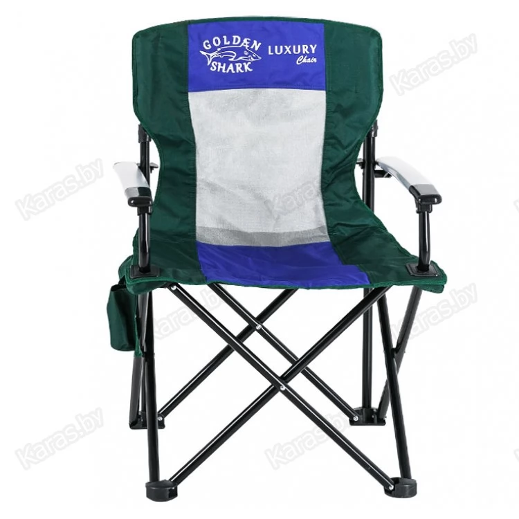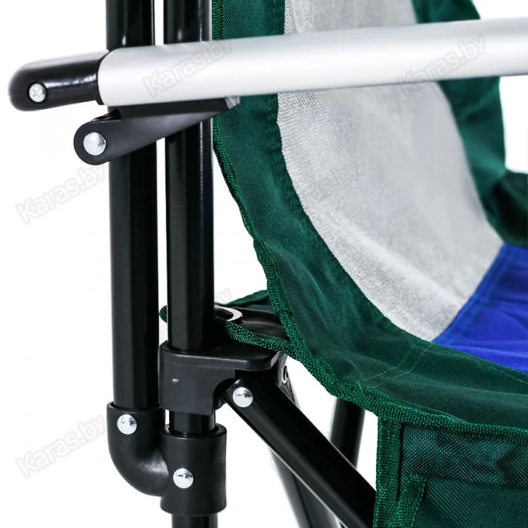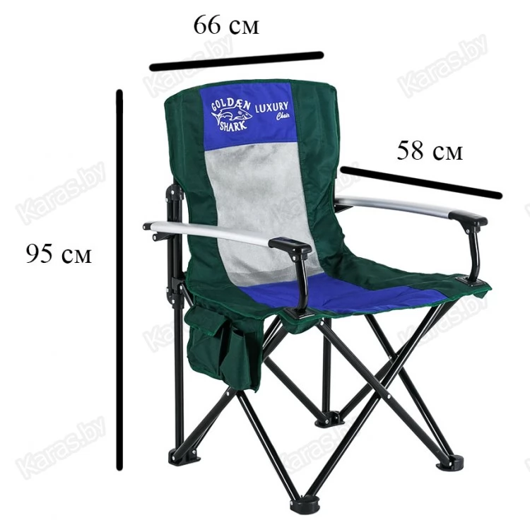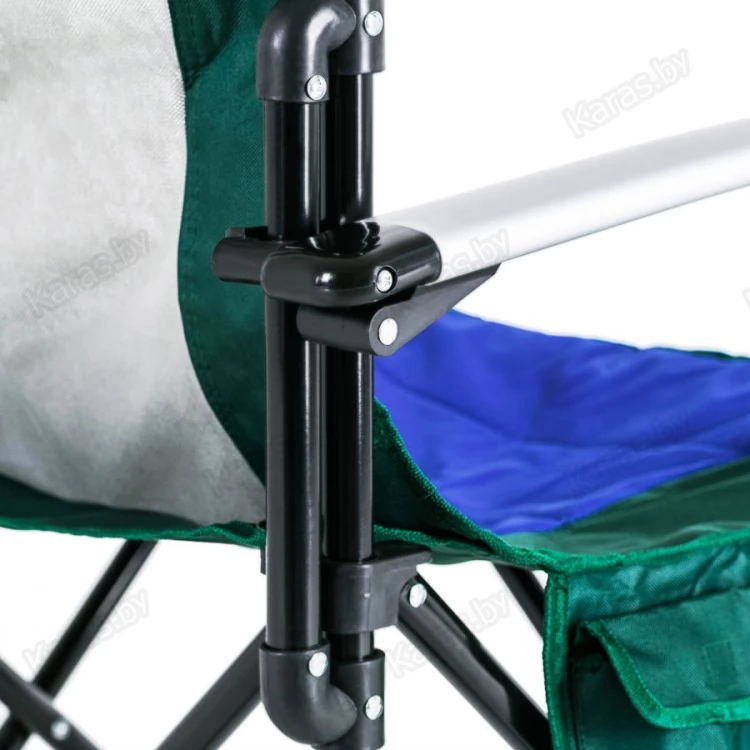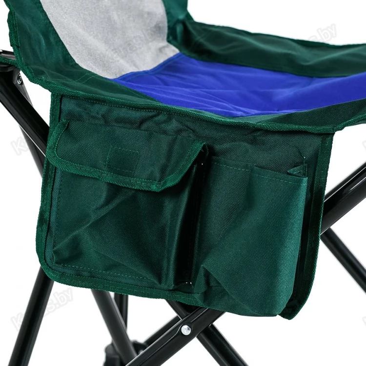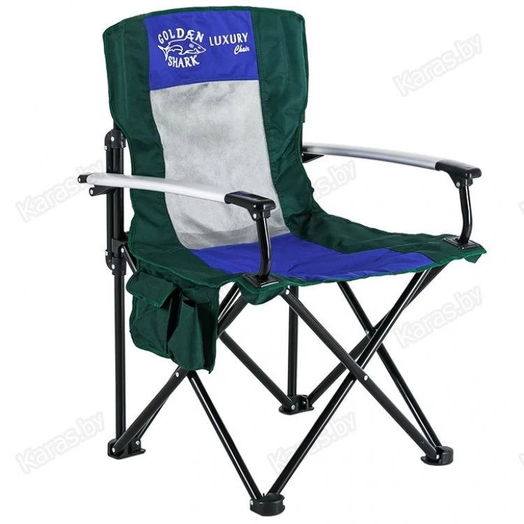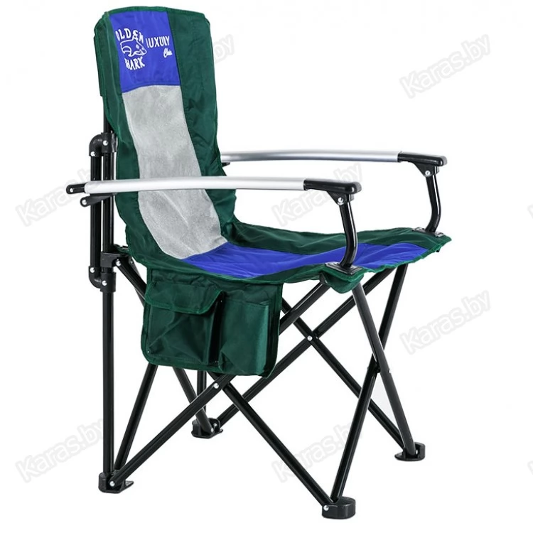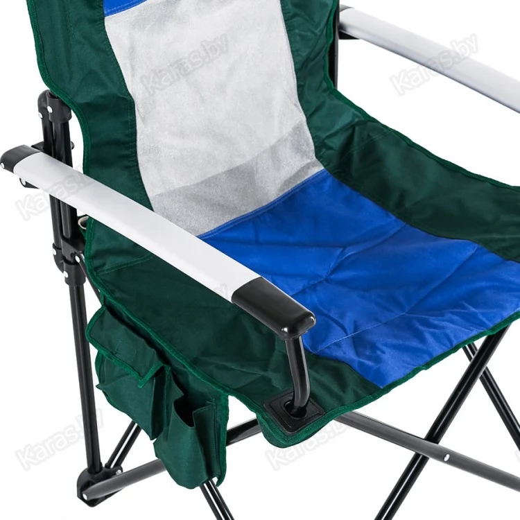 Кресло с алюминиевыми подлокотниками, подстаканником и карманами. Сетка для вентиляции. Чехол с ручкой для переноски. Ткань Oxford 600D применяемая для изготовления стула имеет водонепроницаемое напыление PVC с внутренней стороны, что обеспечивает на 80% меньшую впитываемость воды. Прочная конструкция способная выдержать значительный вес. Компактный размер в сложенном виде.