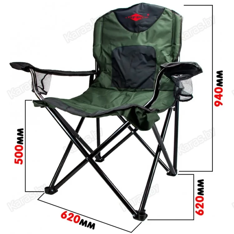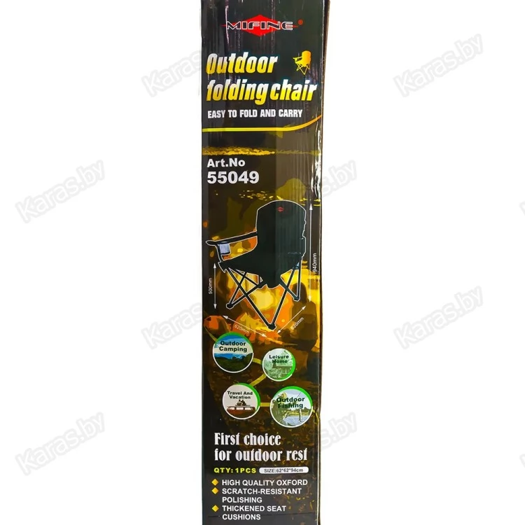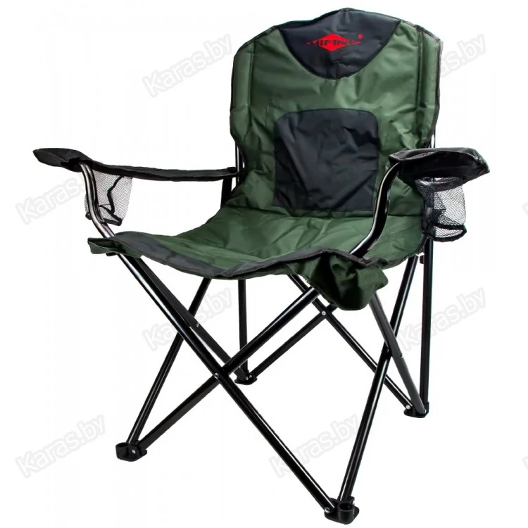 Команда Mifine продумывает мельчайшие нюансы, чтобы ожидание поклевки или просто отдых на природе были комфортнее. Кресло 55049 складное, потому без проблем поместится в багажник. Перевозится в фирменном плотном матерчатом чехле. Изготовленный из стали каркас отвечает за прочность изделия и долговечность. Оба подлокотника мягкие и дополнены подстаканниками из сетчатой ткани. Сидушка со спинкой сшиты из крепкого, устойчивого к износу и влаге материала. Он не маркий и при необходимости без проблем очищается. В местах, которые подвержены большим нагрузкам, есть усиления, швы защищены настроченными лентами.