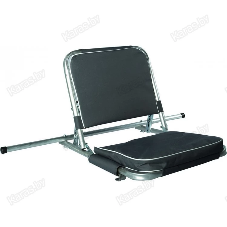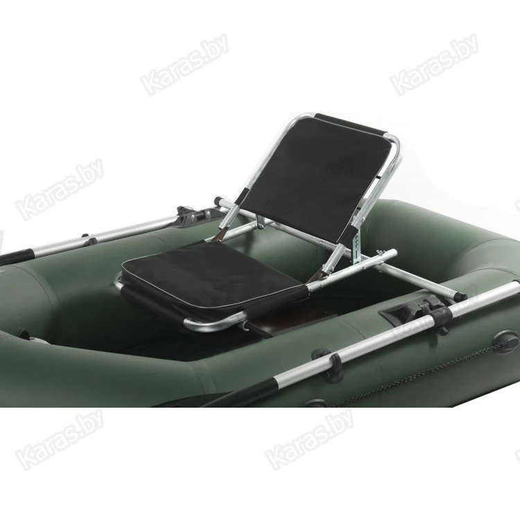 Данная модель оснащена задней опорой. Благодаря ей кресло надёжно фиксируется поверх баллонов лодки и не качается. Спинка сиденья имеет 5 регулируемых положений.
