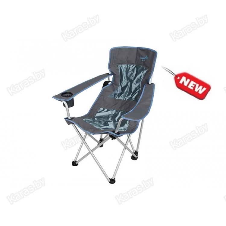 Кресло складное с алюминиевым каркасом, высокой спинкой. Мягкая спинка, тканевые подлокотники с подстаканником, комфортное и прочное.