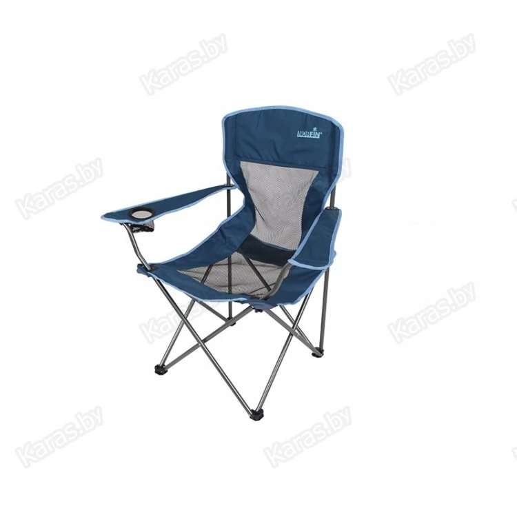 Кресло складное . Кресло максимально комфортно в условиях жаркого климата, так как спинка выполнена из прочной сетчатой ткани. Подлокотник с подставкой для напитков.