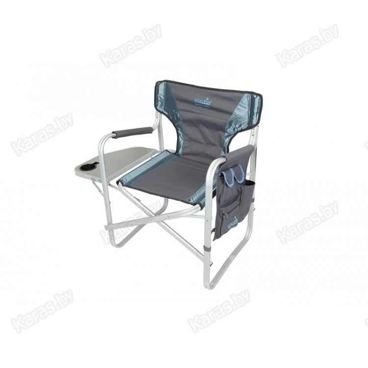 Кресло складное с алюминиевым каркасом, откидным столиком, боковым карманом для телефона и мелочей, смягченное сиденье и спинка. Конструкция ножек кресла придает дополнительную устойчивость креслу, препятствует его проваливанию в песок или рыхлую землю.