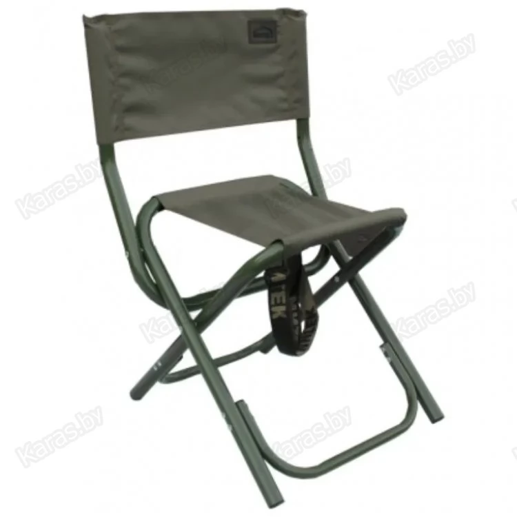 Стул складной изготовлен из стальной трубы 25 мм, покрыт порошковой краской. Ткань - плотностью 600 D, в два сложения. Нагрузка - до 200 кг. Вес - 2,7 кг.