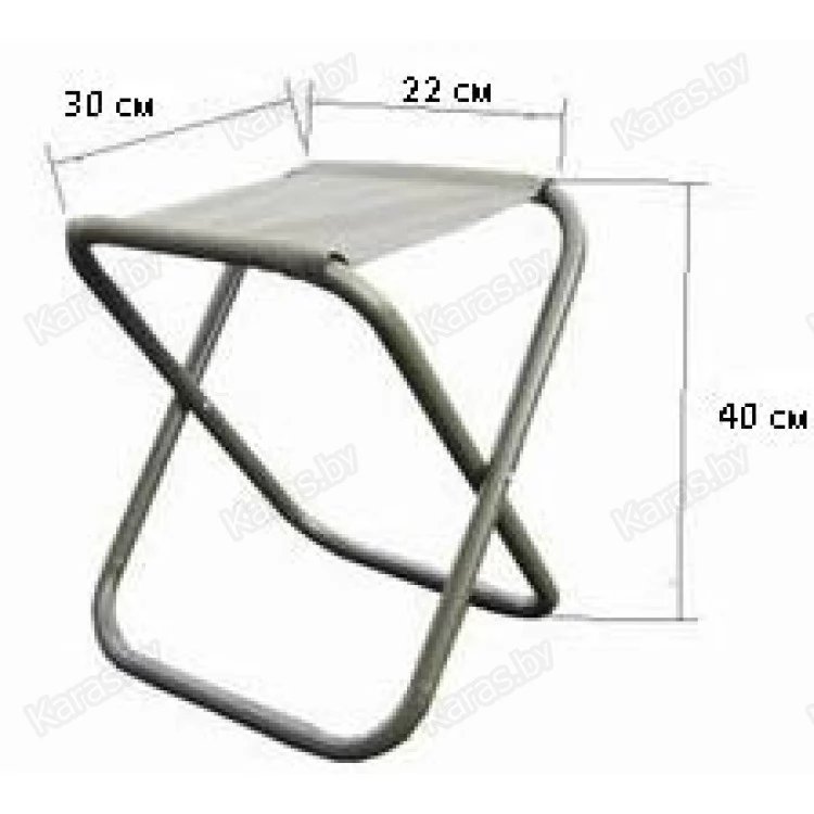 Стул складной изготовлен из стальной трубы 18 мм, покрыт порошковой краской. Ткань - плотностью 240 D, в два сложения. Нагрузка - до 120 кг. Вес - 1,0 кг.